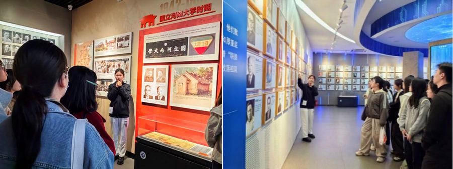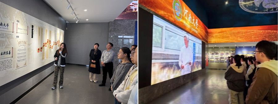 从1912年河南留学欧美预备学校诞生时的教育初心,到中州大学、国立开封中山大学、省立河南大学、国立河南大学等阶段的薪火相传,再到入选双一流建设高校的辉煌,讲解员结合史料细节,生动讲述着不同历史阶段学校的发展故事。当介绍到学校历经时代变迁仍始终坚守育人使命,如今已形成明伦、金明、郑州龙子湖三校区联动发展格局,学科覆盖数十个门类的蓬勃现状时,新生们纷纷驻足凝视,眼中满是赞叹与自豪,深刻体会到百年河大的深厚底蕴与强劲活力。