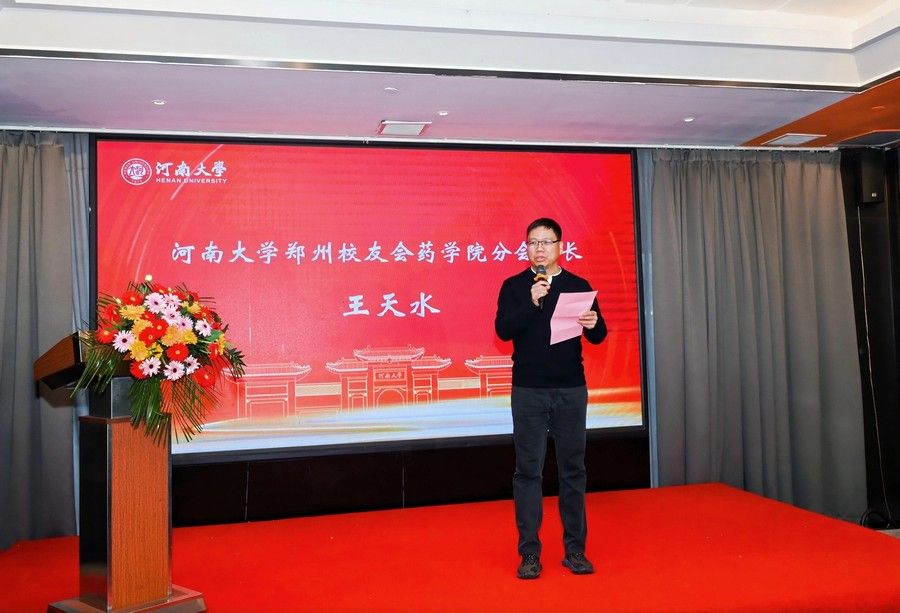 团拜会在庄重而温馨的校情片《大学之道》中拉开帷幕。河南大学郑州校友会药学院分会会长王天水致欢迎辞,他回顾了过去一年校友分会紧密联系母校、服务校友、促进行业交流的各项工作,并代表分会向全体校友致以新年问候,号召大家持续汇聚力量,助力母校与学院发展。